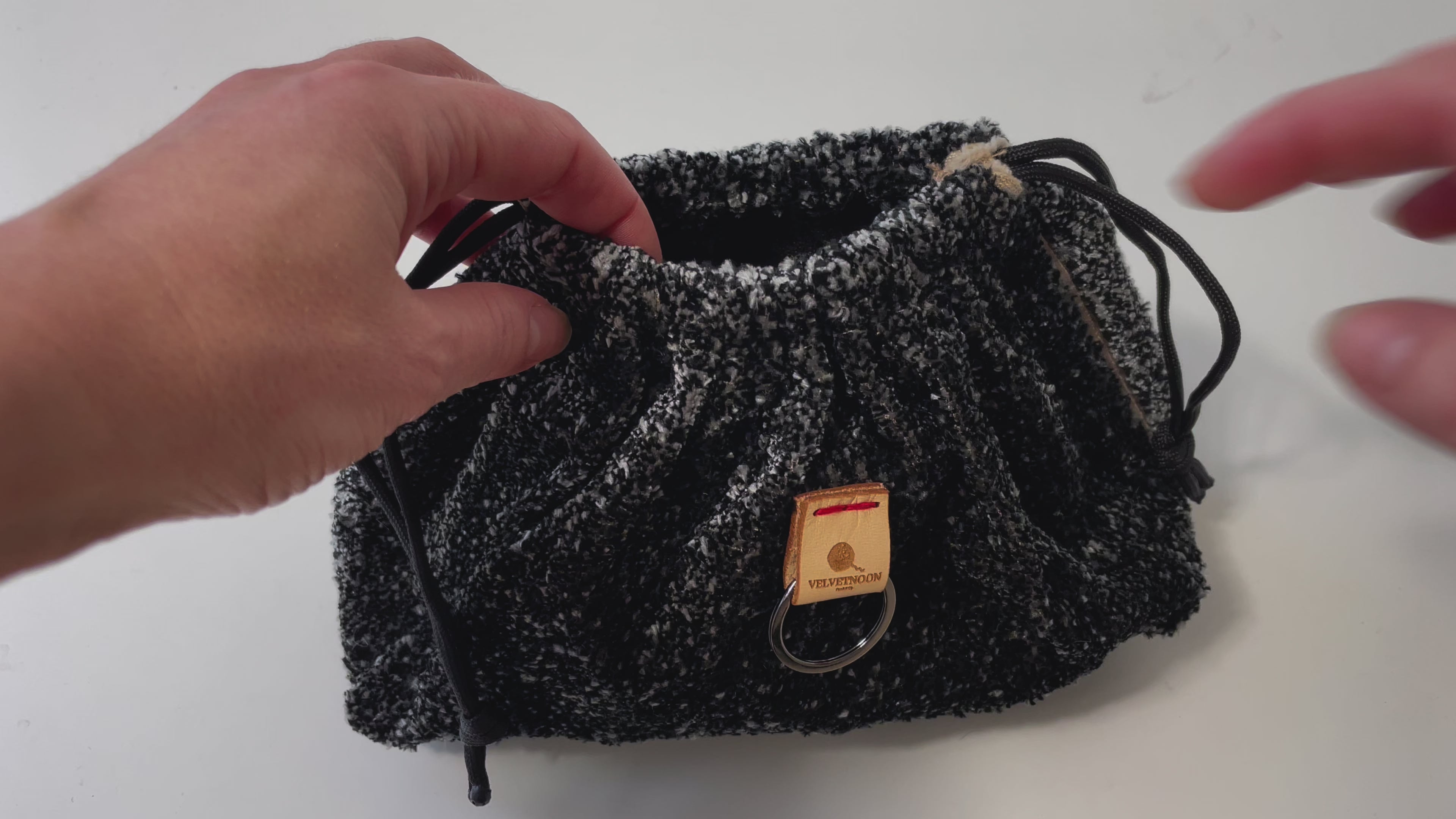 Skal du ha´en hund i dag? Så kommer der en lille blød og lækker en lige her. Den er klippet og syet i Lynæs af upcyclede boligtekstiler fra Frankrig. Og hvem elsker ikke sort og hvis - salt og peber farverne? Perfekt til småting, der ellers bare ligger og flyder. Måler ca 20 cm i bredden og 15 cm i højden.